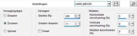 Zoomen---Sterkte 100 ---Midden Horizontale verschuiving 0---