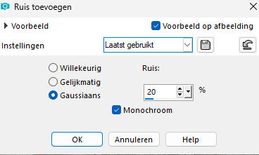 Adjust--Add/remove noise--Add noise--Gaussian-- 20%--Monochrome checked