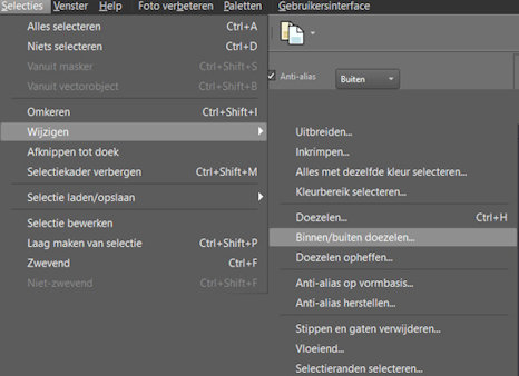 Selecties---Wijzigen---Binnen/buiten doezelen---Buiten 40.